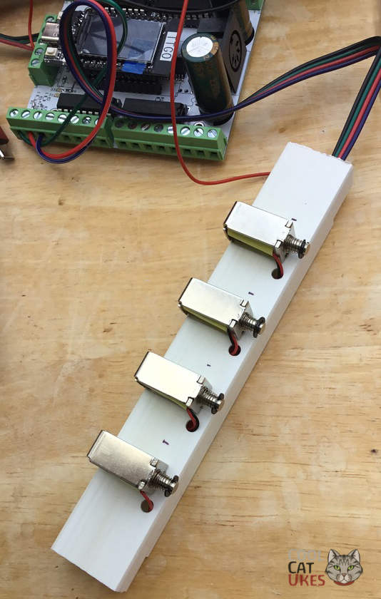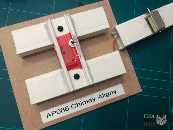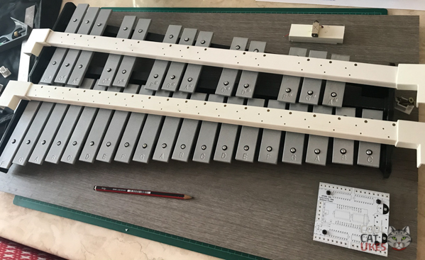 CyberChime ONE is well underway with the new PCB working, baseboard and mechanics all sorted out for the new 32 key device. Jigs made to help align solenoids on the cross bars, dimensions documented, so the new instrument will be repeatable.