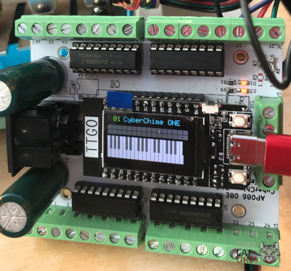 Update 25th October - all the new PCBs are here, they all work just fine, but alignment of the solenoids has proven tricky. I'm awaiting some custom adjustable brackets to make it all work, then CyberChime ONE should be ready.